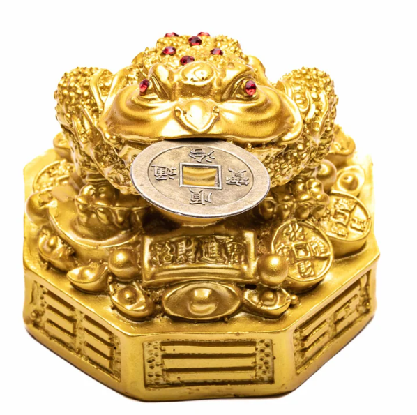 Feng Shui Money Frog, also known as Jin Chan (Golden Toad) in Chinese culture, is a three-legged toad often depicted with a coin in its mouth. It symbolizes wealth, prosperity, and protection against bad luck.