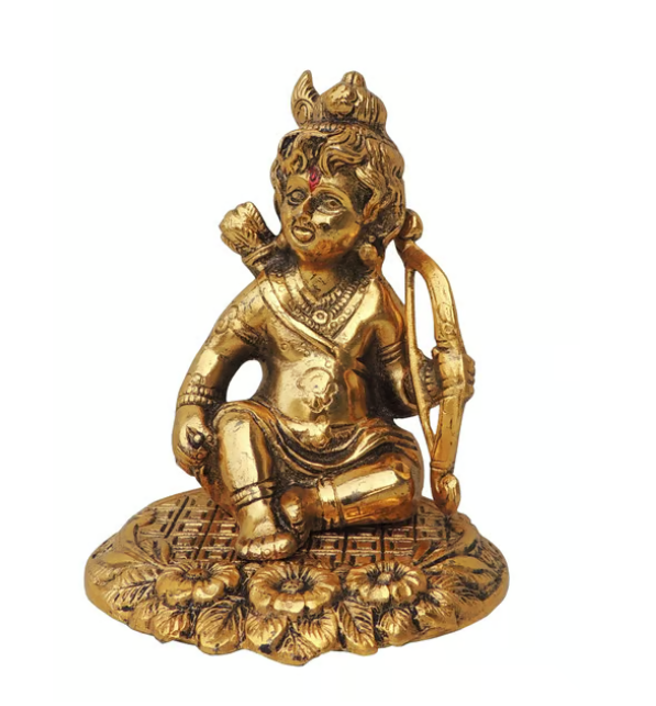 Sacred brass Ram Lalla idol with intricate detailing, perfect for pooja, home décor, or gifting. A divine symbol of faith and devotion.
